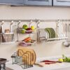 It can storage a variety of kitchenware,at the same time you can put lid,pan or others kitchenware.