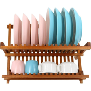 Easy Installation and Store: Dish drainer collapsible design easily store when your dishes, no need to install, take out the packing box and use the wooden dish rack.