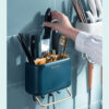 The Kitchen Storage Holder is a convenient organizer and drainer rack specifically designed for storing and drying spoons, forks, chopsticks, and other tableware in the kitchen. It provides a practical solution for keeping your utensils organized and easily accessible.