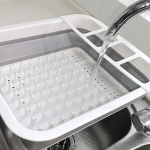 Selected Material: Constructed from durable and safe PP and TPR, the dinnerware sink organizer is hard and reliable. And it is easy to wash with warm soapy water.