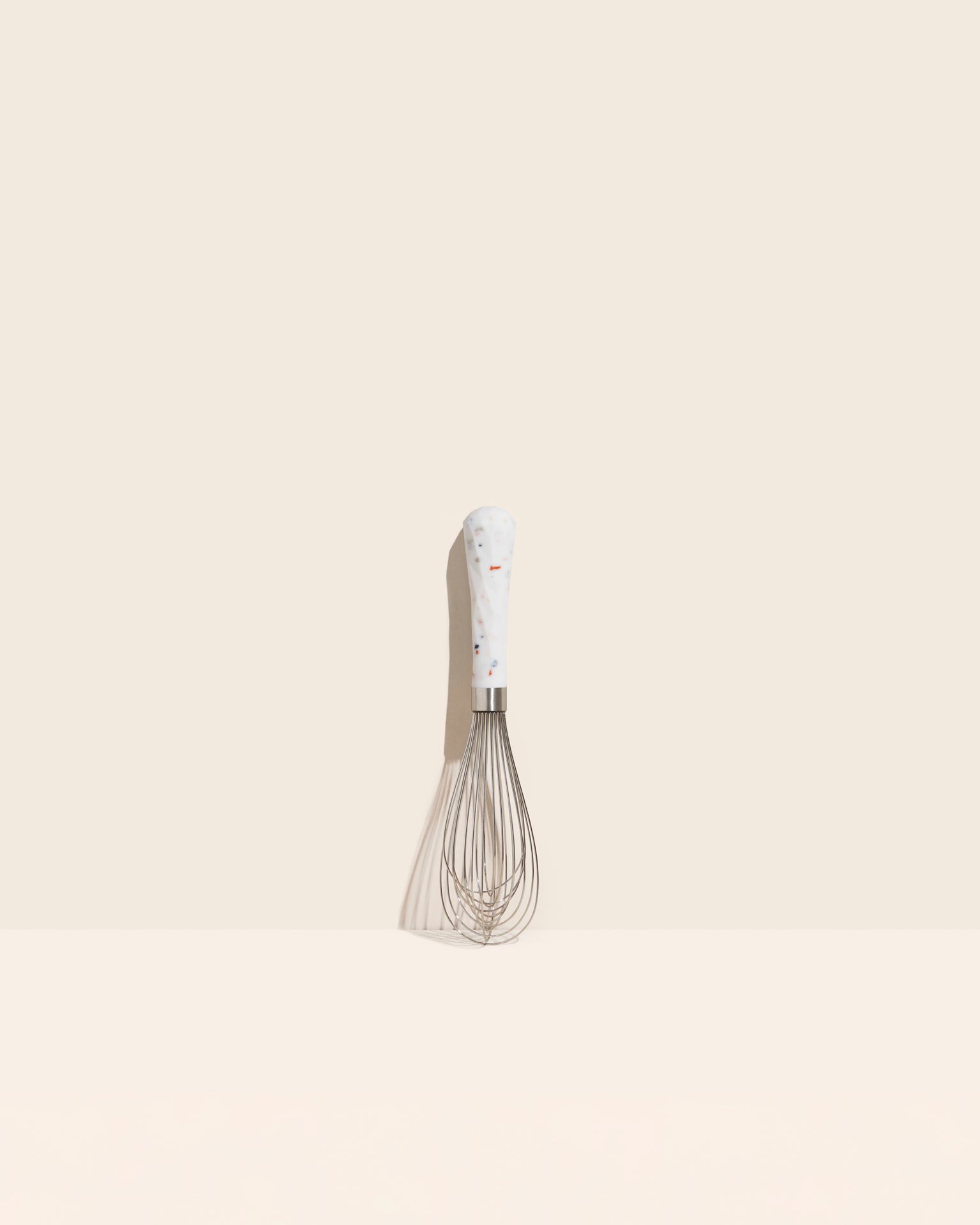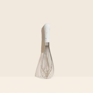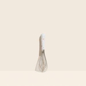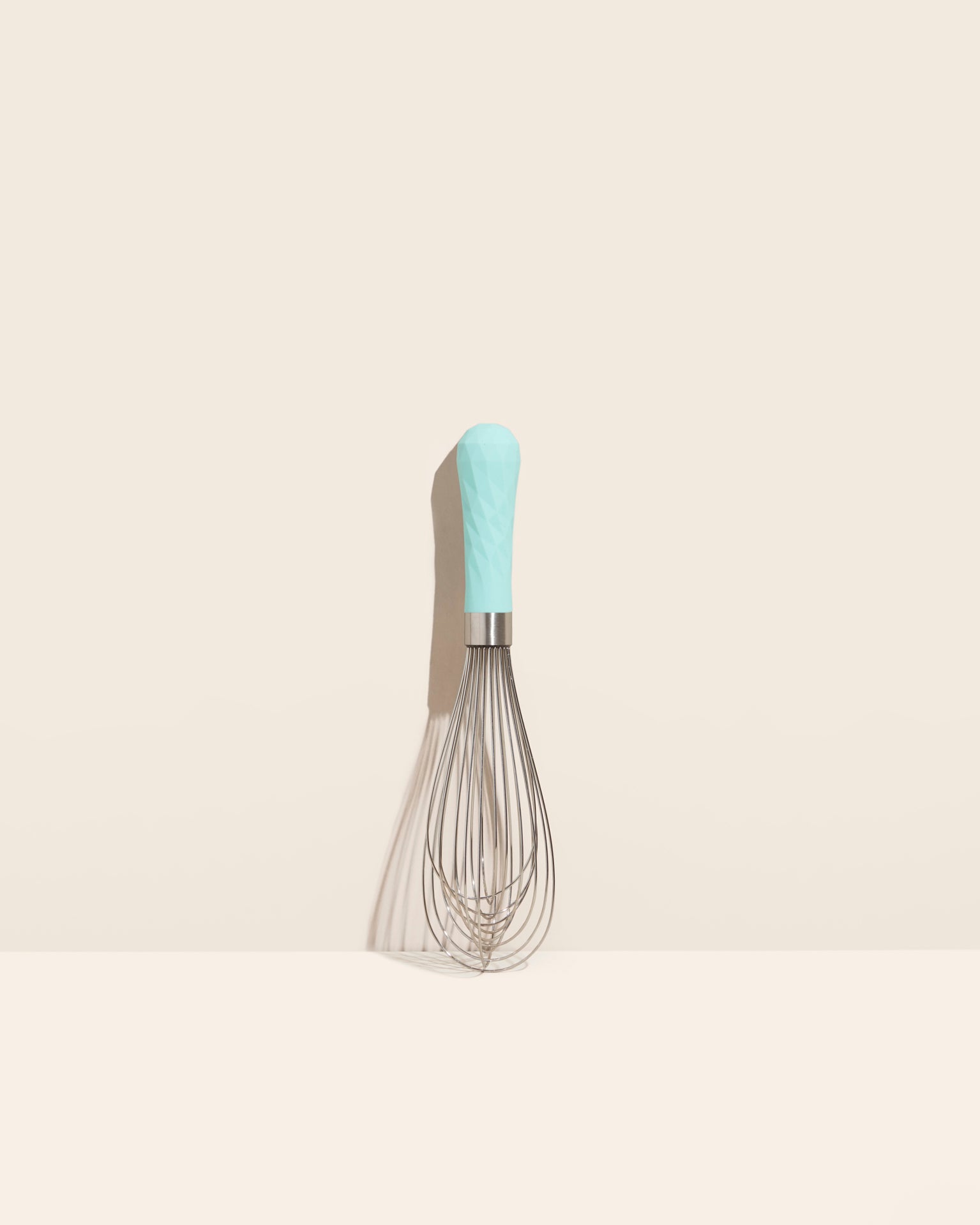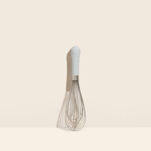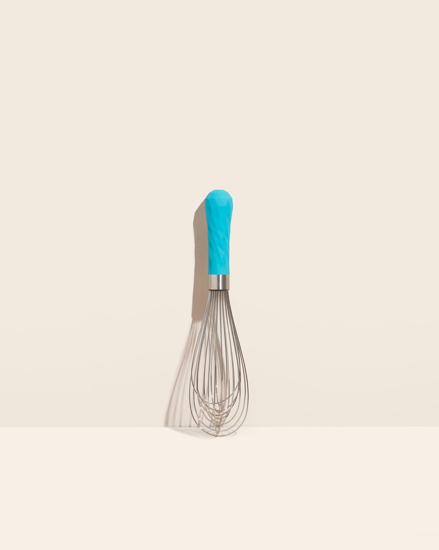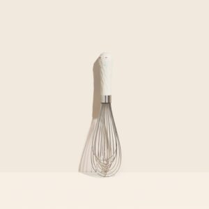 The Ultimate Whisk includes 12 stainless steel wires balanced with a handle that allows for maximum vibration without tiring out your wrist.